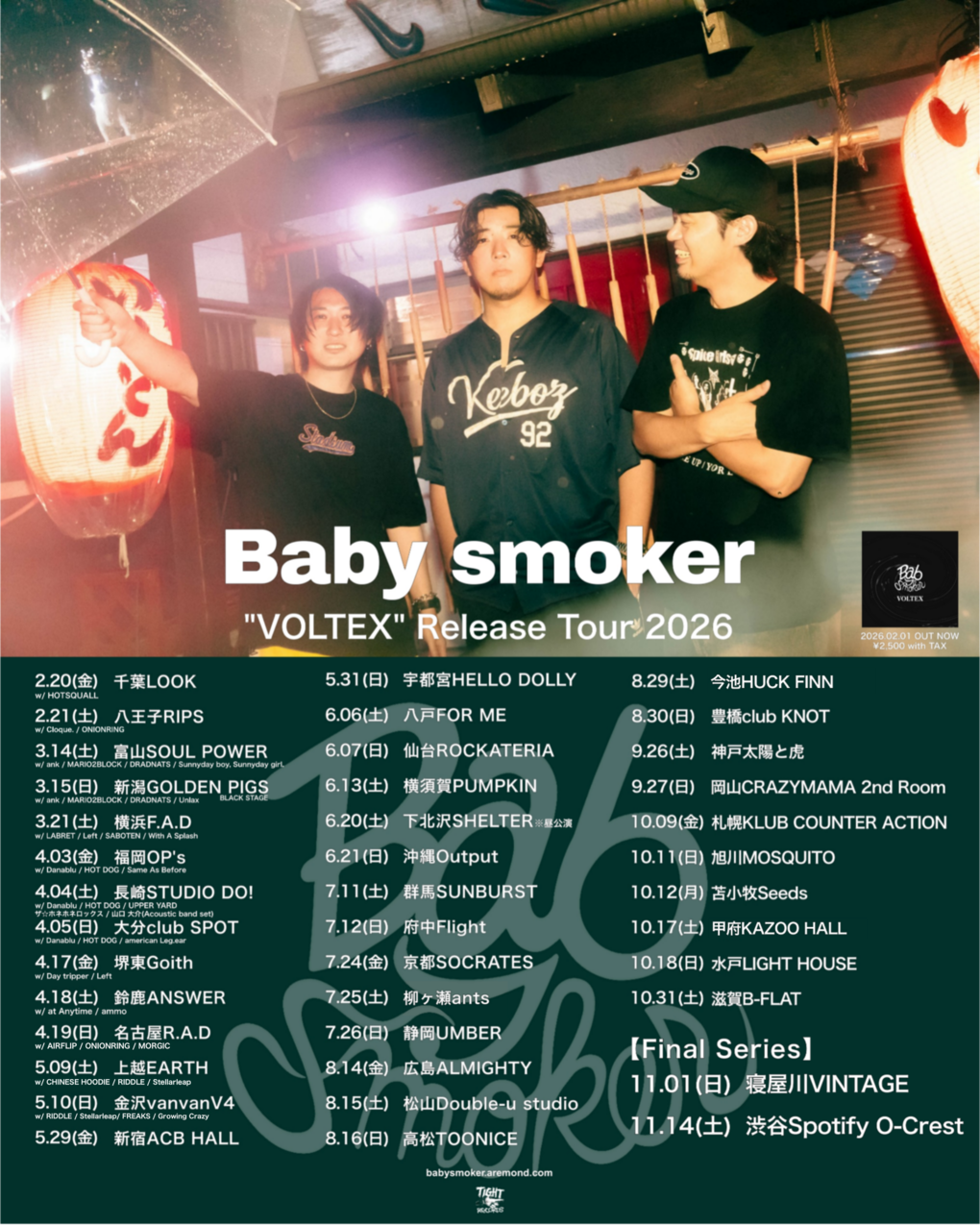 Baby smoker "VOLTEX" Release Tour 2026 新宿、八戸、仙台公演の対バン発表!!